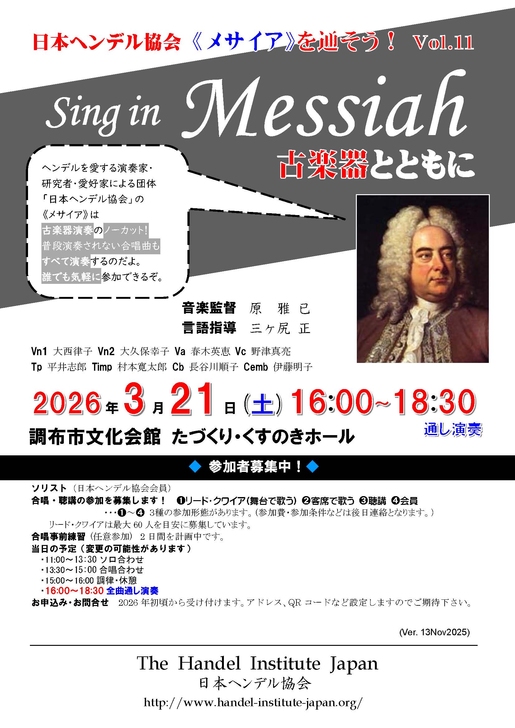 文京シビックホール | 没後250年記念のメサイアイベント。シング・イン(シング・アロング)です。 |